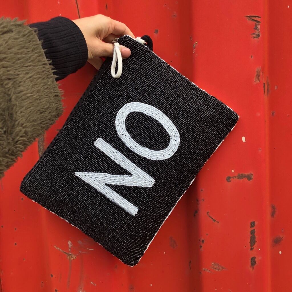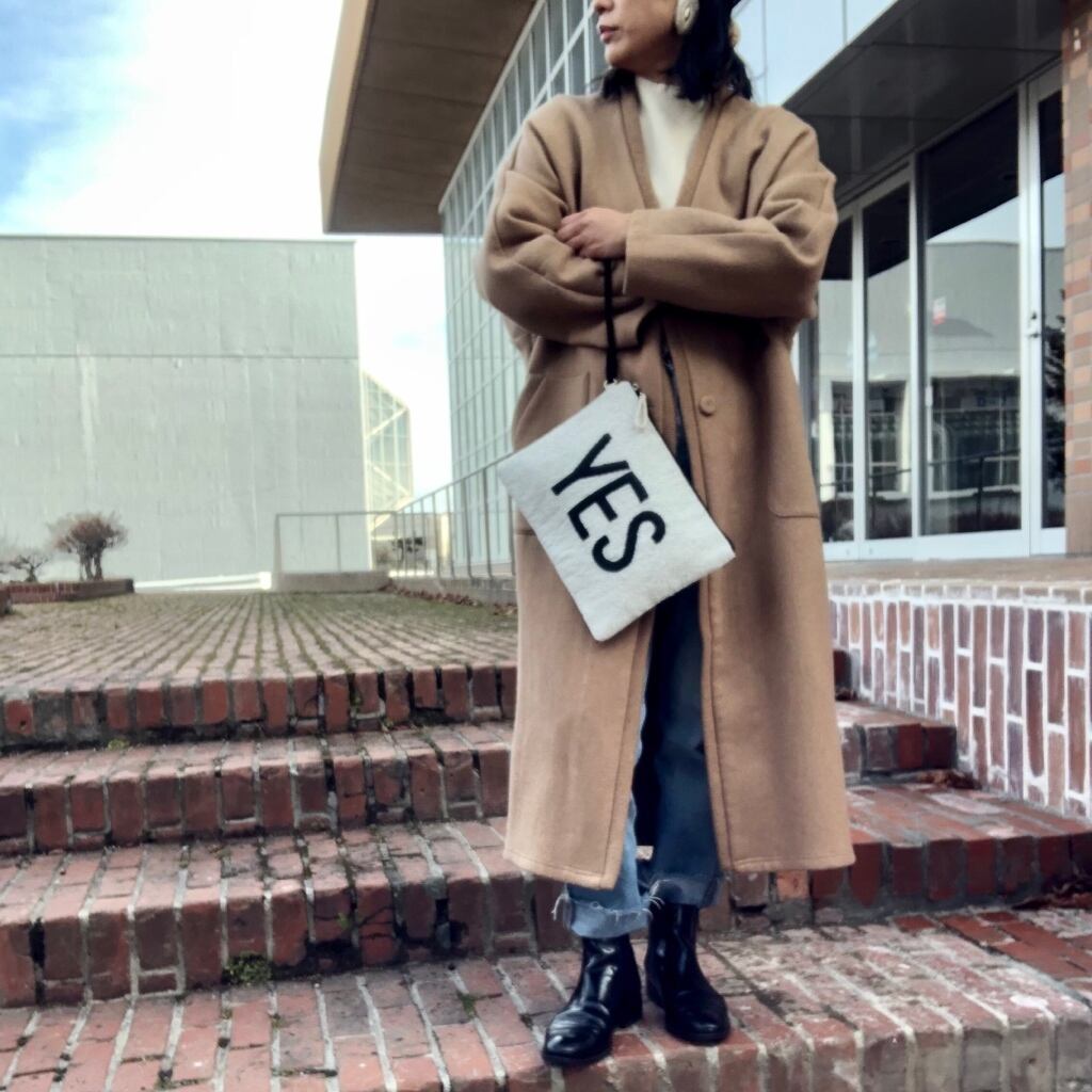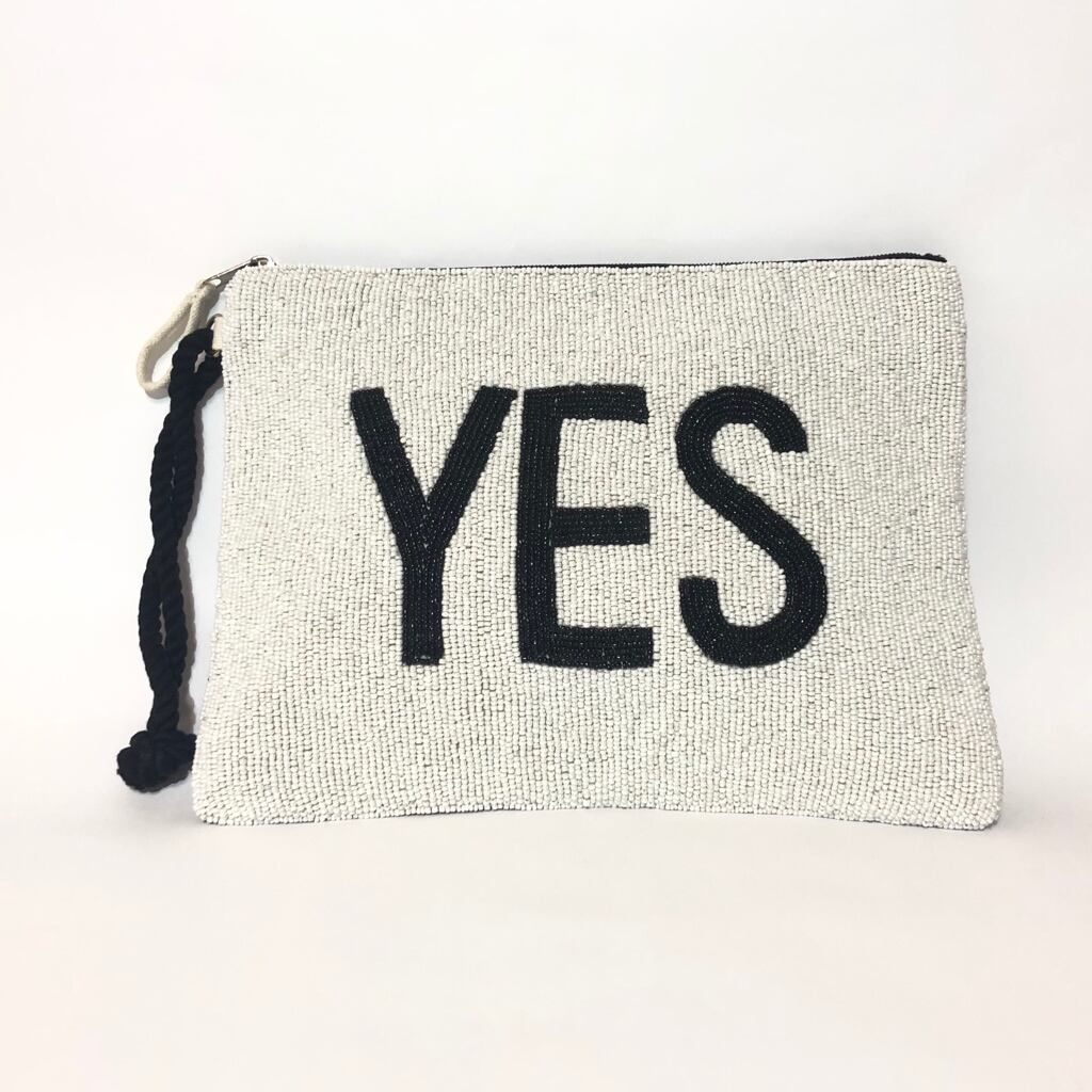 YES/NOデザインが個性を高めるクラッチバッグ。